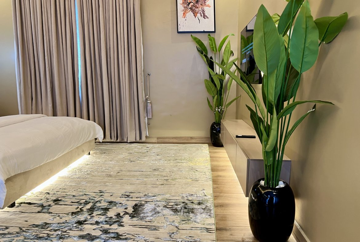 Whether you’re lounging on the plush sofa, enjoying entertainment on the smart TV, or taking a dip in the pool, this apartment delivers the perfect mix of luxury and comfort.